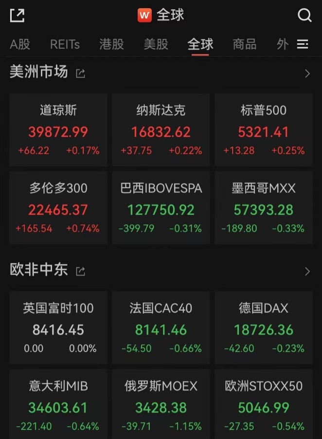 欧洲三大股指小幅下跌。截至收盘,德国DAX指数跌0.23%,法国CAC40指数跌0.66%,英国富时100指数跌0.08%。